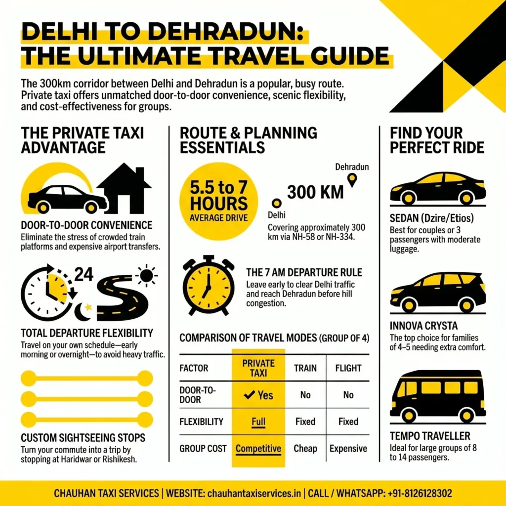 Stop wrestling with train waitlists and overcrowded buses. Book the best Delhi to Dehradun taxi service and travel on your own terms.